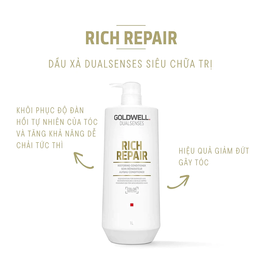 Dầu xả Goldwell Dualsenses Rich Repair là một loại dầu xả dành cho tóc khô và hư tổn, thấm sâu vào bên trong tóc và tự phục hồi lại mái tóc rất hư tổn.